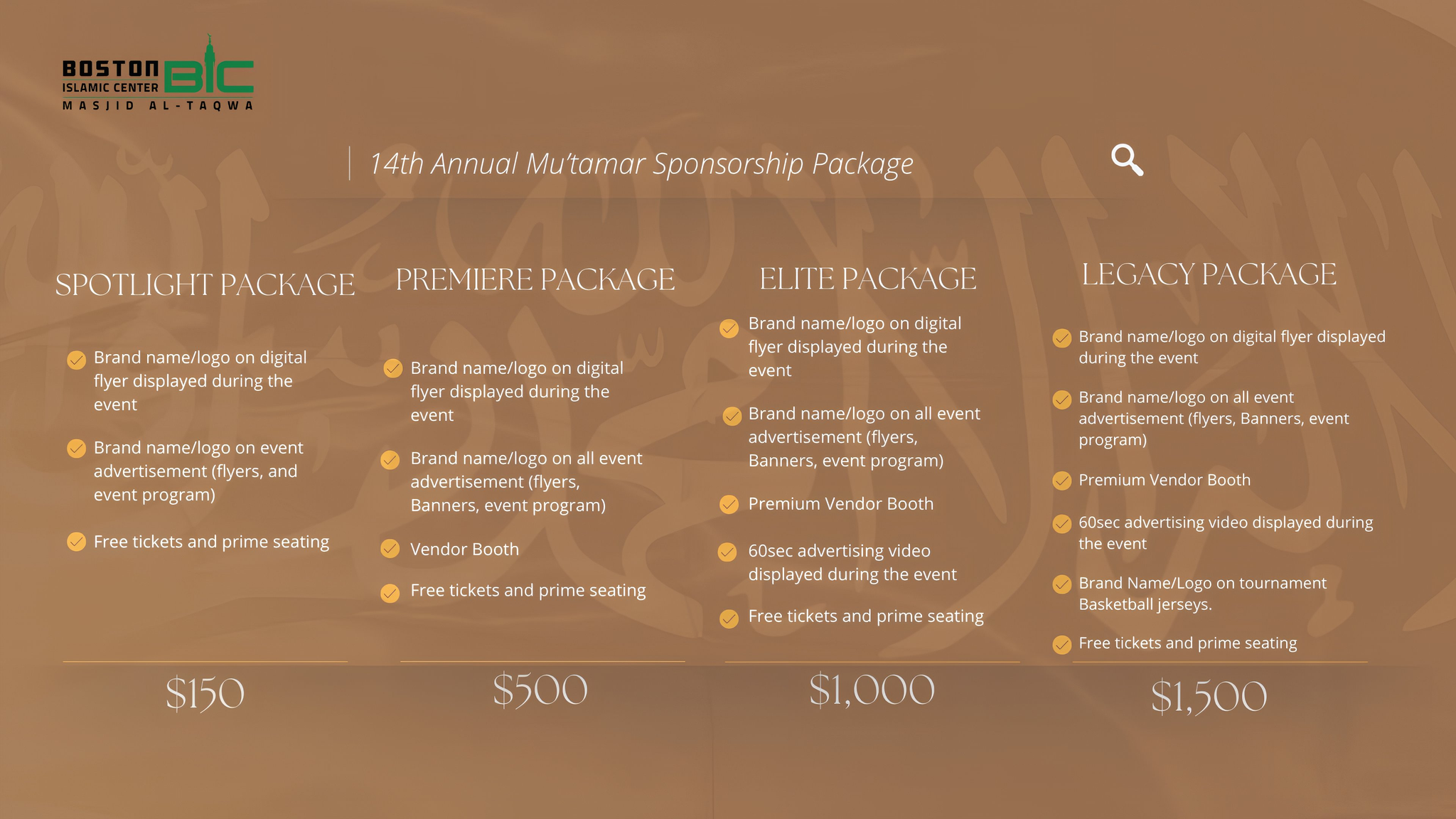 We’ve put together four sponsorship packages designed to offer valuable visibility and engagement opportunities: